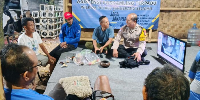 Tangsel | REALITAS — Bhabinkamtibmas Kelurahan Benda Baru Polsek Pamulang AIPTU Iwan Setio Budi melaksanakan kegiatan pengecekan Poskamling Terpadu. Kegiatan tersebut berlangsung