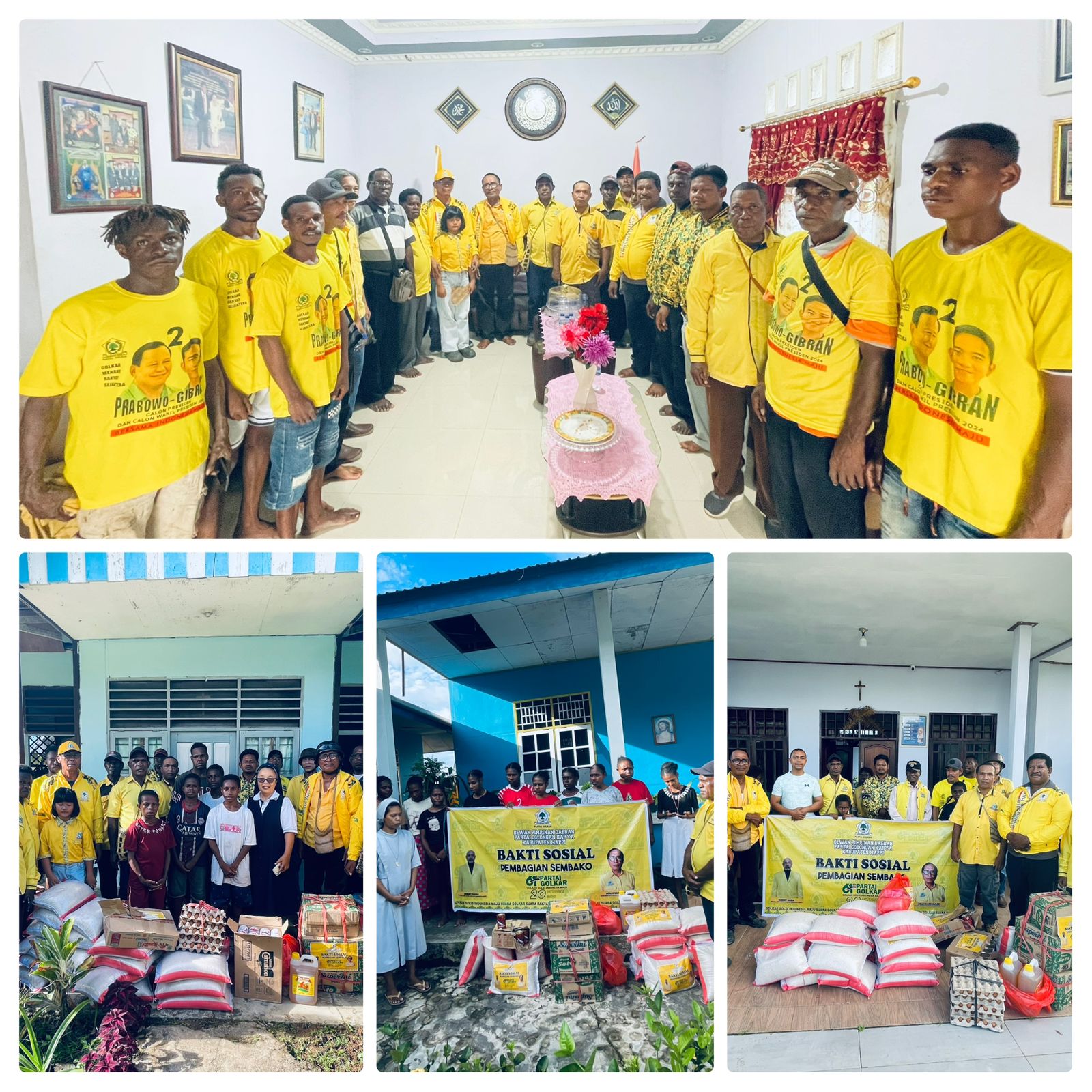 Mappi | REALITAS — Jelang (Hari Ulang Tahun) HUT Ke-61 tahun Partai Golkar. Dewan Pimpinan Daerah (DPD) Partai Golkar Kabupaten Mappi Provinsi Papua Selatan mengadakan Bakti Sosial dengan menyalurkan bantuan sembako di asrama Kesito Kepi, asrama Carolina, dan asrama gereja St. Yakobus Rasul Emete, pada Sabtu (11/10/2025).