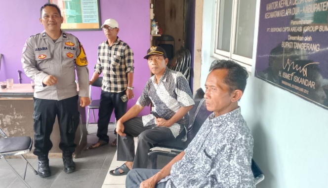 Tangerang | REALITAS — Bhabinkamtibmas Desa Curug Sangereng, Aipda A. Jakaria, S.H., melaksanakan kegiatan KRYD (Kegiatan Rutin yang Ditingkatkan), di Kantor Desa Curug Sangereng, Kecamatan Kelapa Dua, Kabupaten Tangerang. Dengan metode Door To Door System dan Cooling System sebagai upaya memperkuat komunikasi langsung dengan warga. 6/12